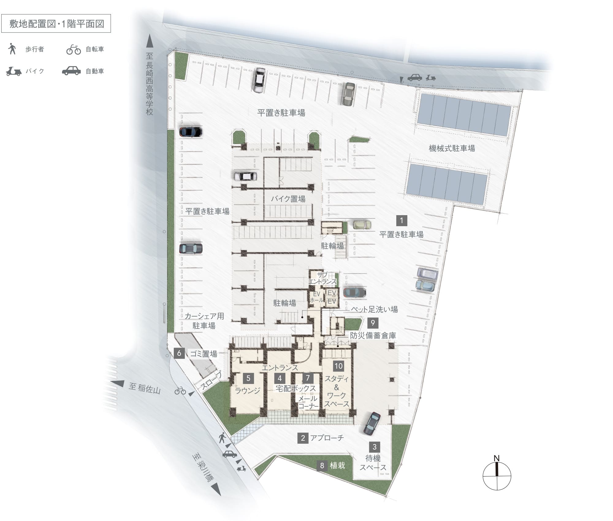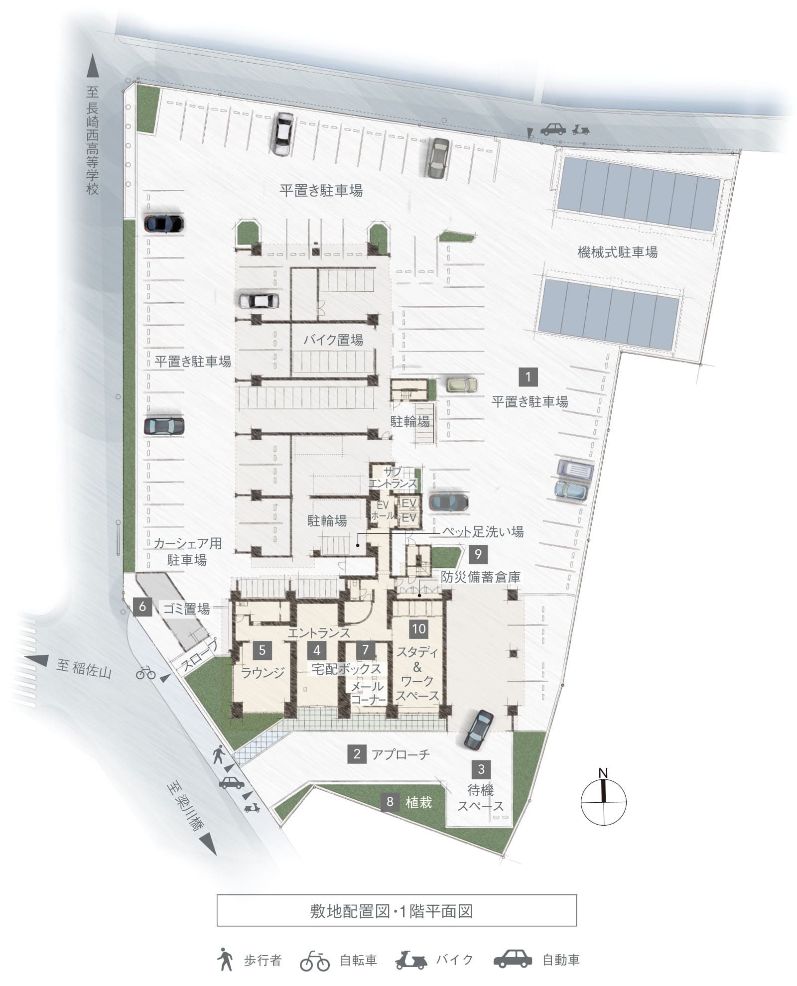 敷地内には、豊かな植栽で四季の風景を演出。街角に潤いを、日々の暮らしに彩りをお届けします。