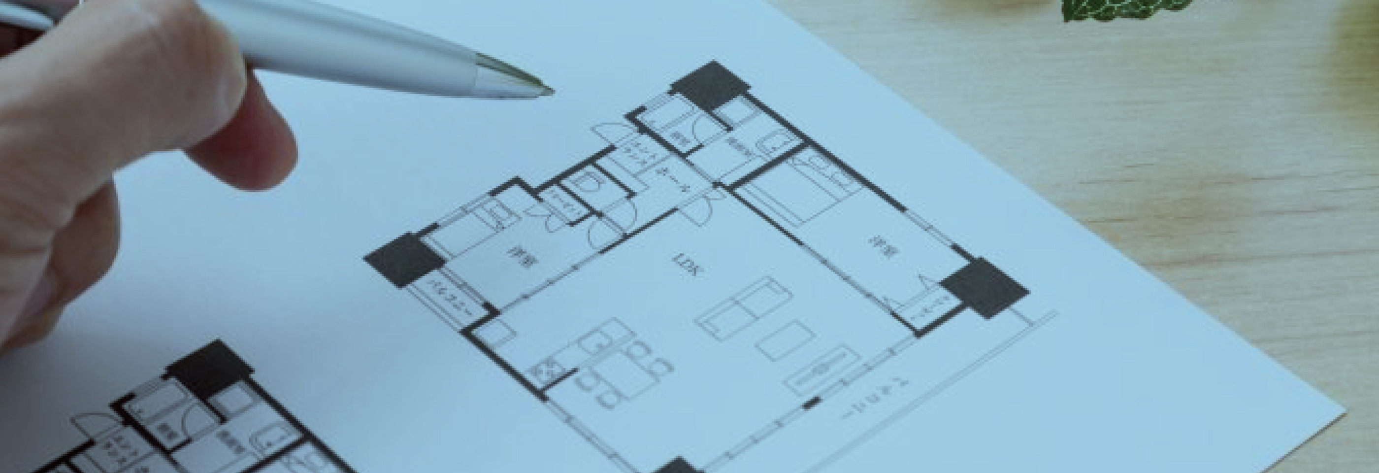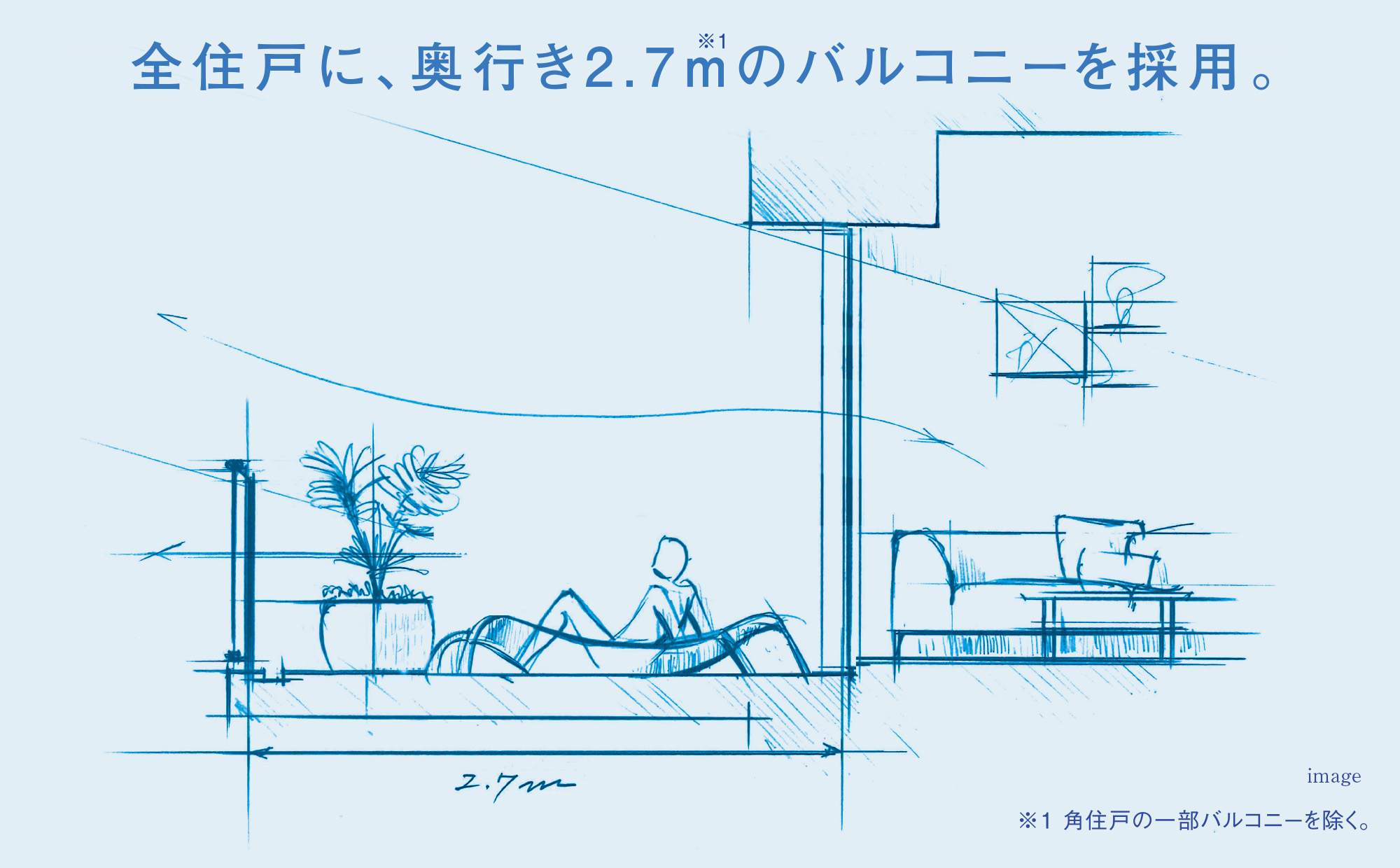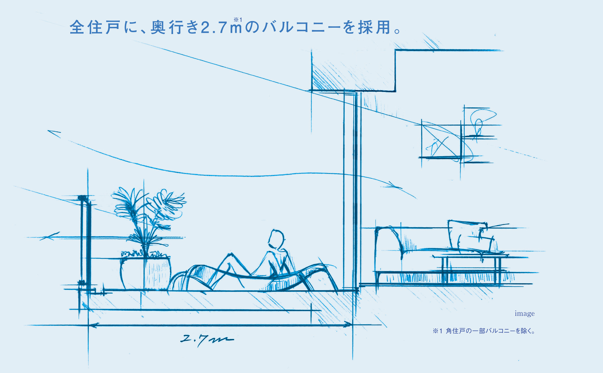 柱が室内に張り出さないことで空間に広がりを生み出す