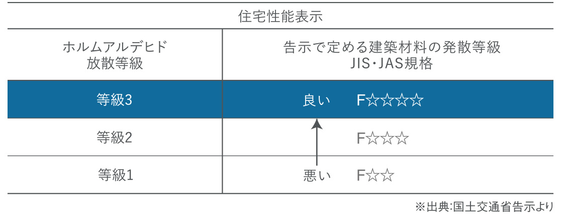 本物件はJIS規格で「F☆☆☆☆」と認められた建築材料を採用しており、シックハウス対策に努めています。